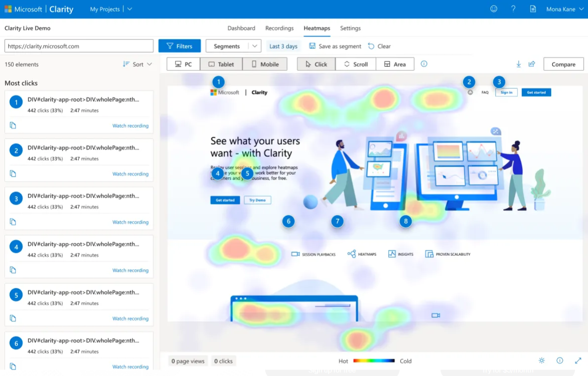 한 온라인 쇼핑몰에서 Microsoft Clarity를 사용하여 체크아웃 페이지를 분석한 결과, 사용자들이 결제 버튼을 찾지 못해 이탈하는 문제를 발견했습니다. 버튼 위치를 변경한 후 전환율이 25% 증가했습니다.