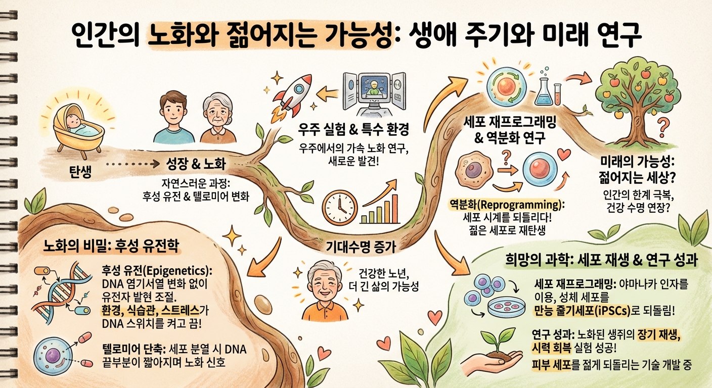 노화 연구는 계속해서 발전하고 있어요. 세포 수준에서의 성공은 인간 전체에게 적용하기까지 많은 단계를 거쳐야 하지만, 가능성을 보여주었다는 점에서 큰 의미가 있죠 . 윤리적인 문제나 안전성 문제 등 해결해야 할 과제는 많지만, 과학자들이 끊임없이 연구하고 있기 때문에 미래에는 노화의 한계를 넘어설 수도 있을 거예요 .