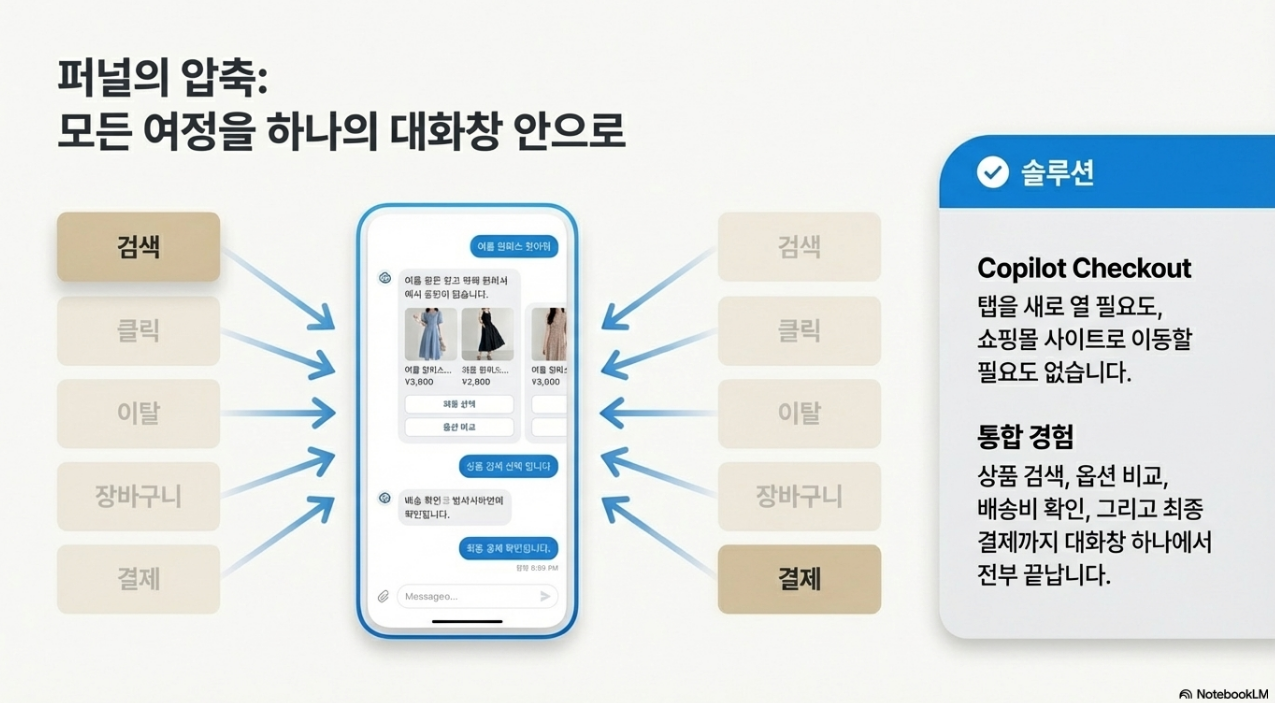 Copilot Checkout은 단순히 결제 버튼 하나를 채팅창 안에 넣은 것이 아닙니다. 소비자의 구매 여정 전체를 AI가 설계하고 완결하는 구조로 이커머스의 판을 다시 짜려는 시도입니다.