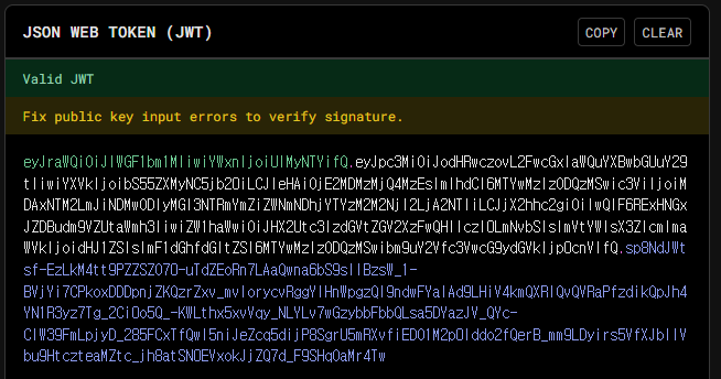 alg: "RS256"은 비대칭 키(Asymmetric Key) 암호화 알고리즘인 RSA를 사용한다는 의미입니다. 따라서 비밀 키(Private Key)로 서명하고, 공개 키(Public Key)로 검증하게 됩니다.